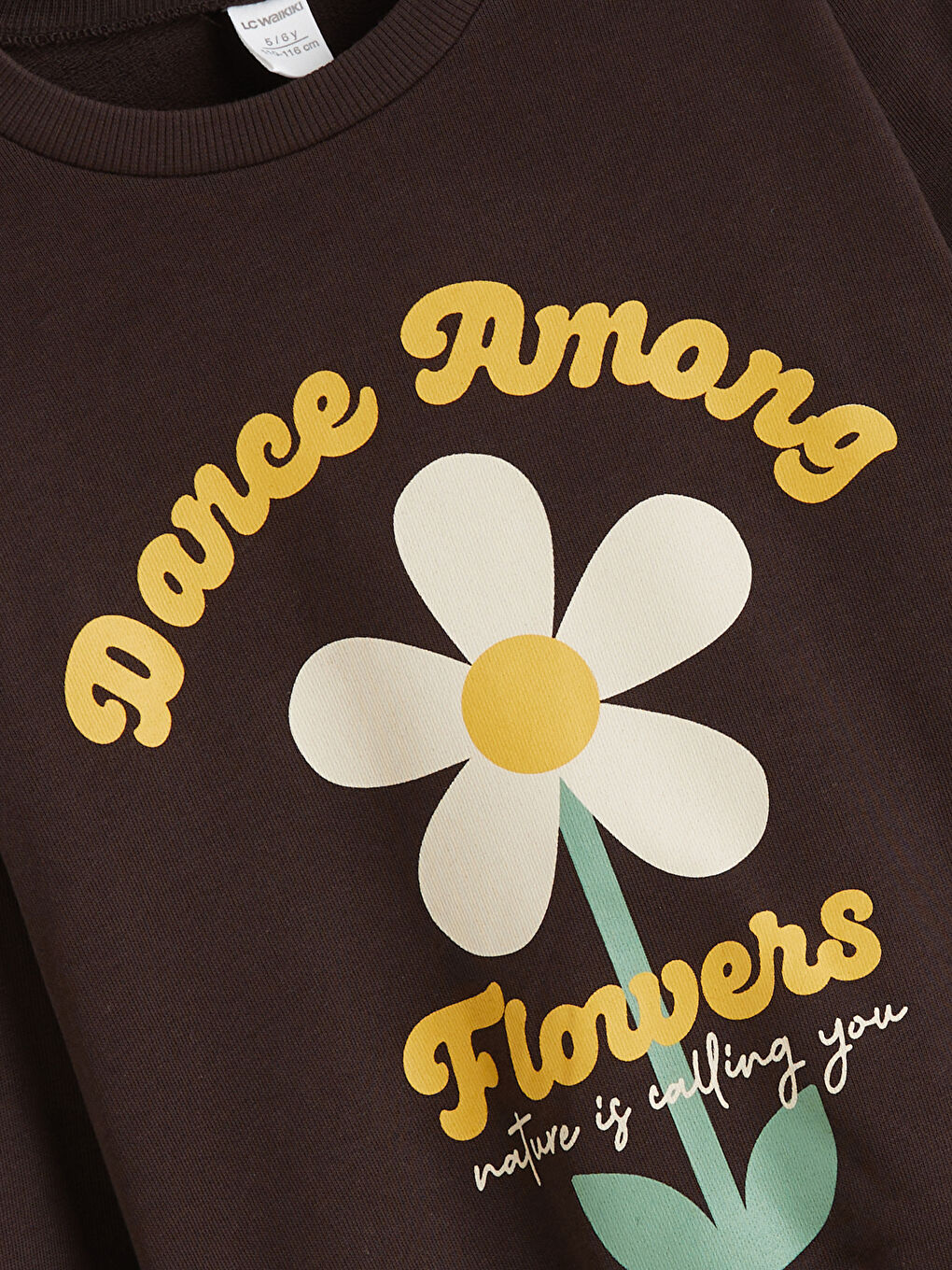 LCW Kids Brown Floral Girl’s Sweatshirt and Sweatpants