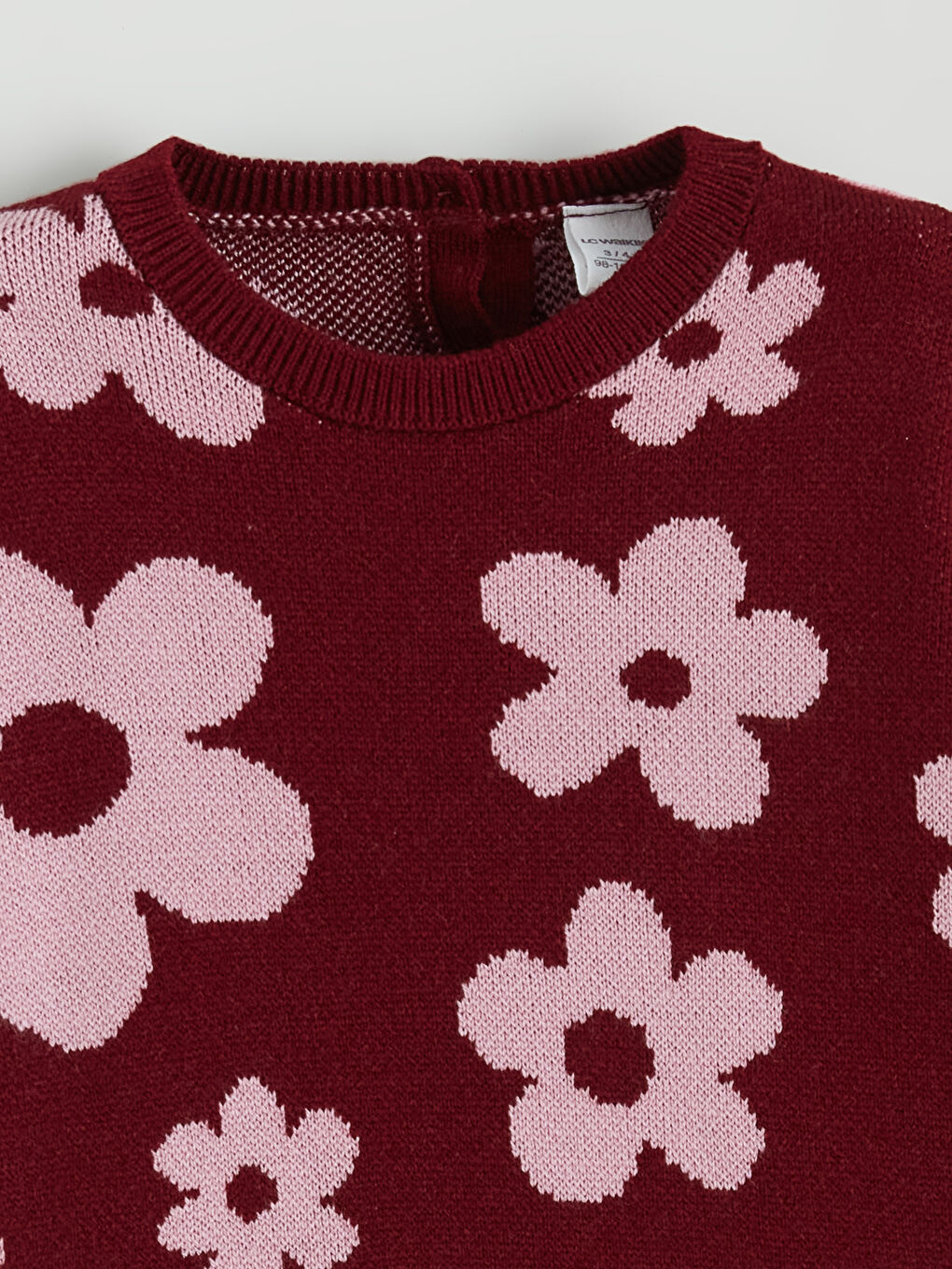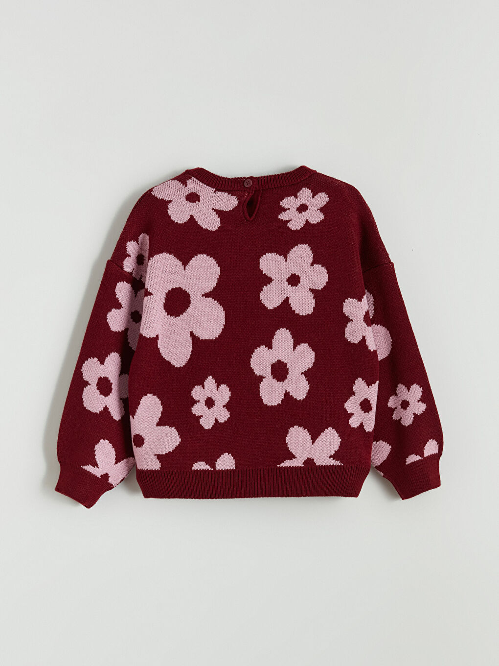LCW Kids Burgundy Floral Patterned Girls Knit Sweater