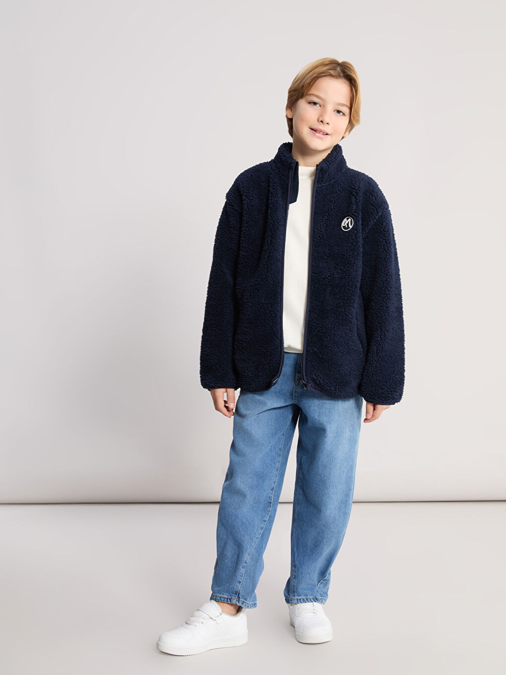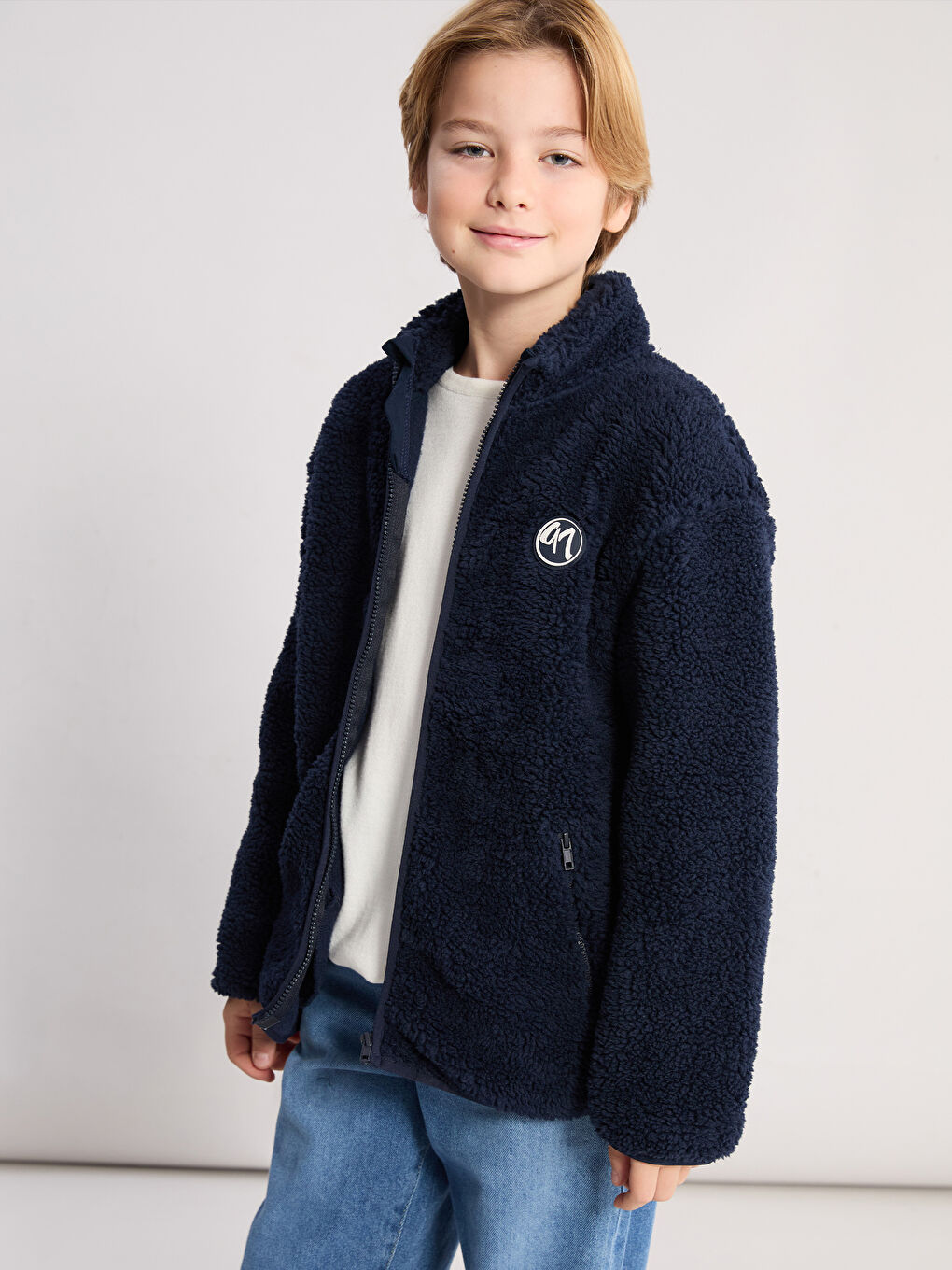 LCW Kids Navy Blue Zip-Up Plush Cardigan for Boys