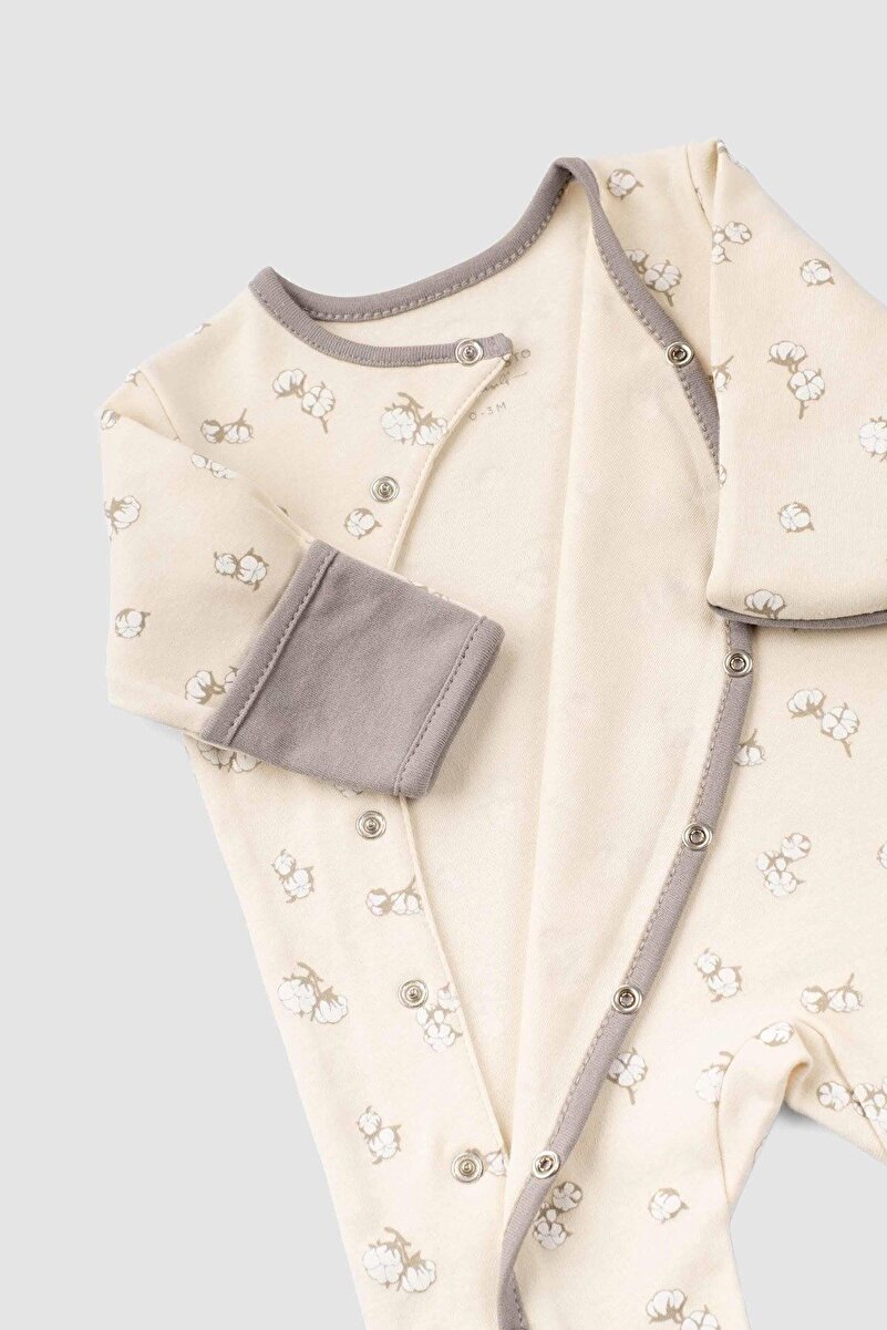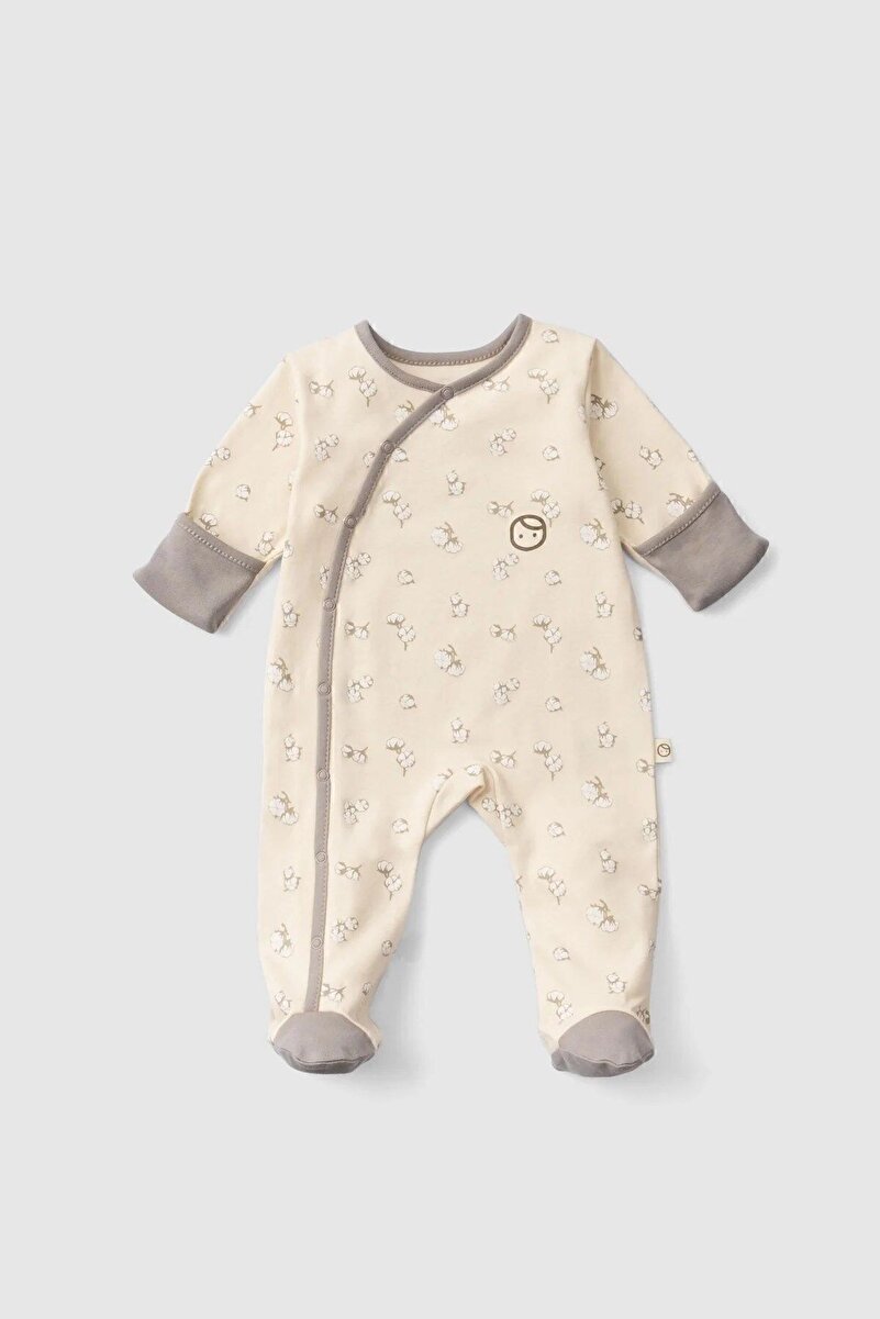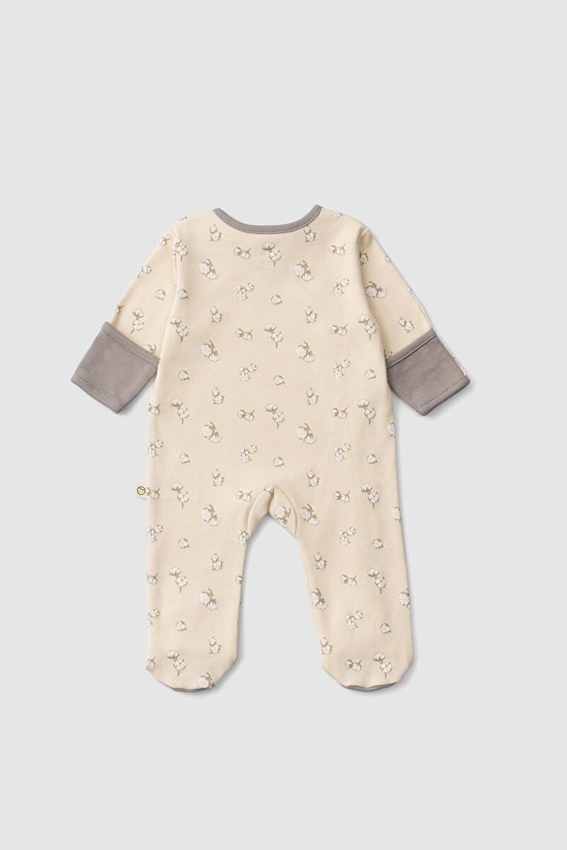 Little Gusto Organic Cotton Footed Romper with Built-in Mittens – Small Cotton Print, 6-9 Months