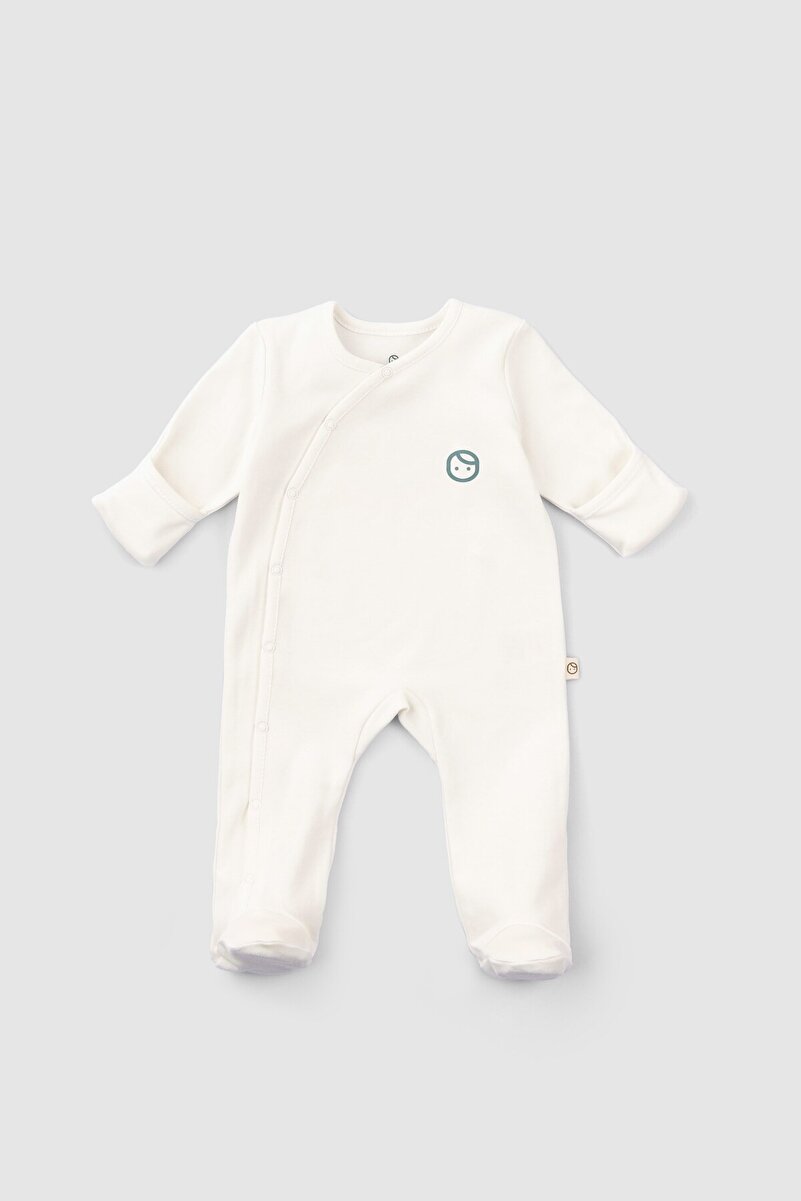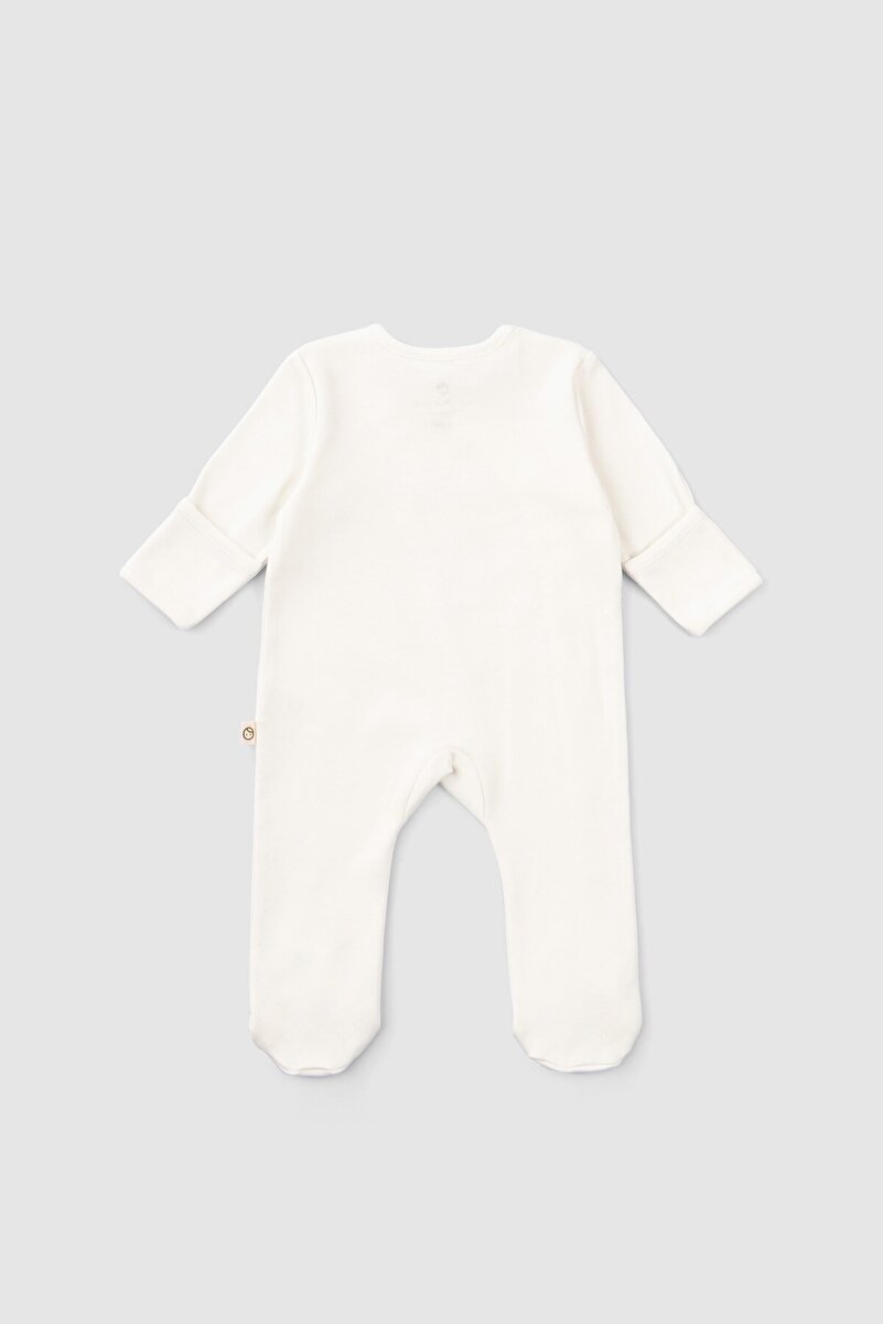 Little Gusto Organic Cotton Footed White Romper with Built-in Mittens