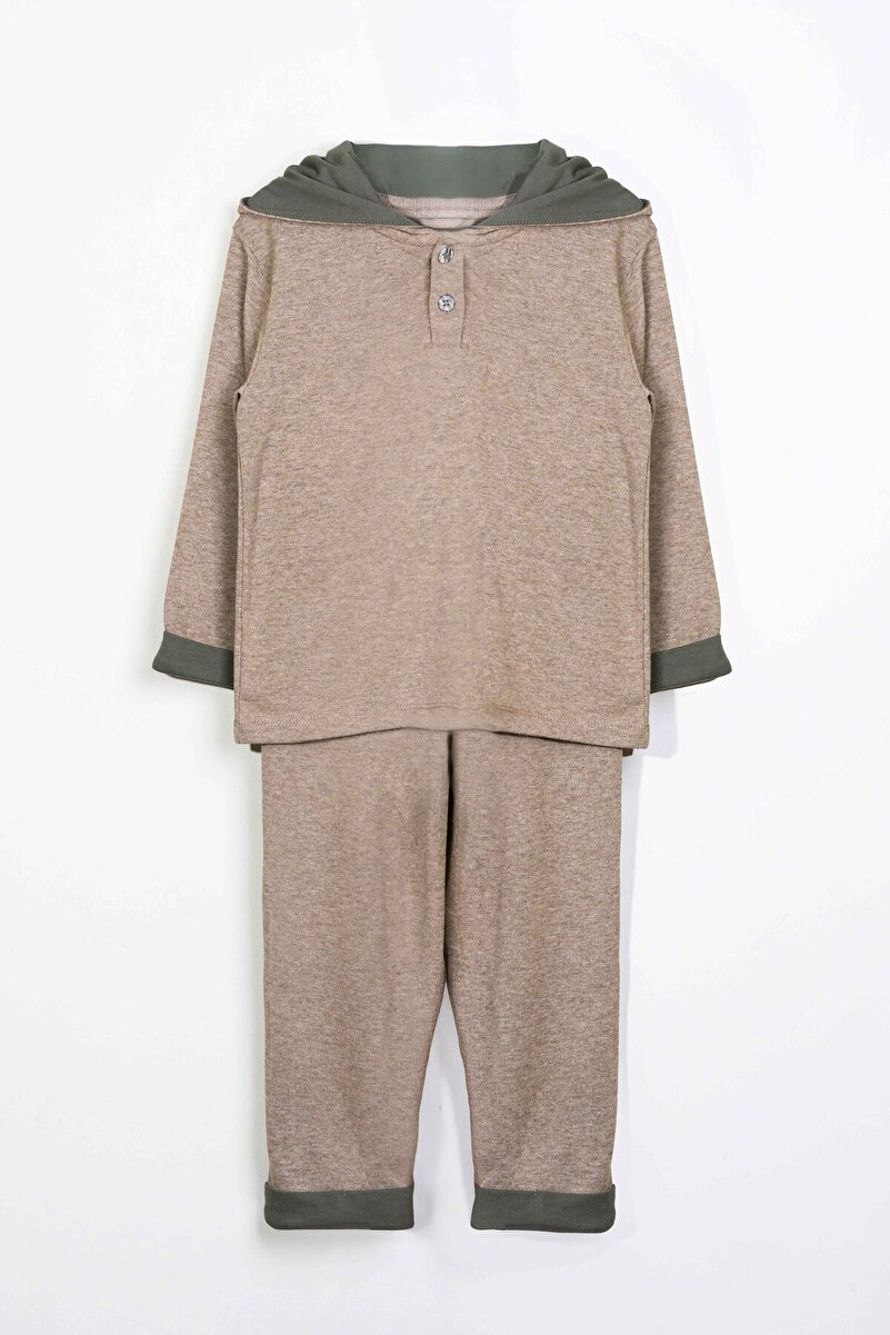 LUESS Boys' Hooded Button-Detail Seasonal Outfit - Beige (3-4 Years, 8-9 Years)