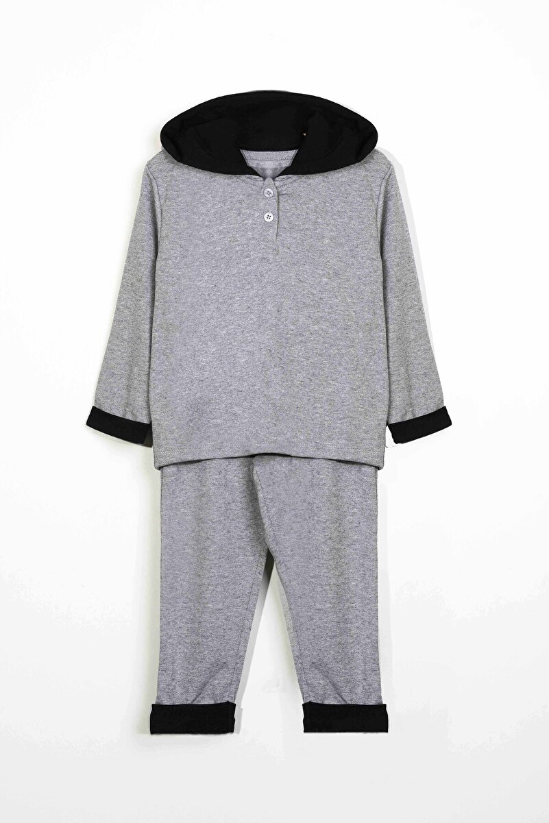 LUESS Boys’ Hooded Button Detail Seasonal Set – Gray