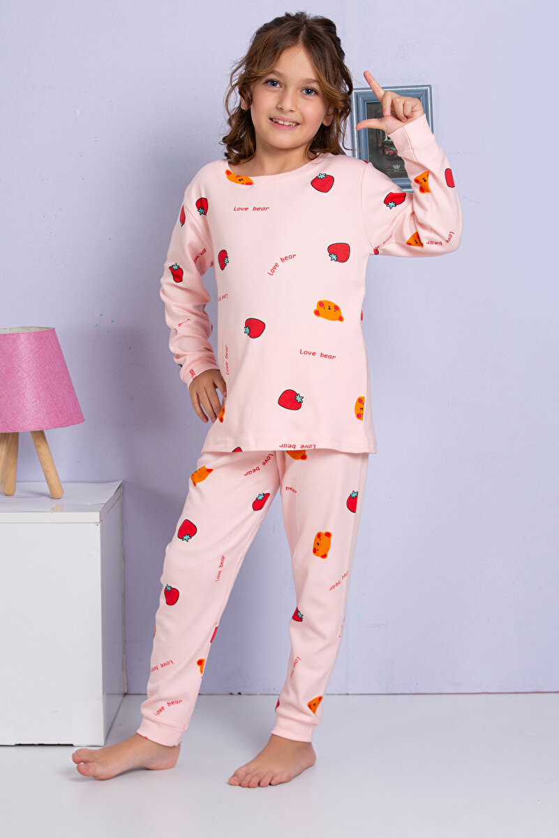 MADALINA Girls’ 100% Cotton Strawberry Print Pajama Set