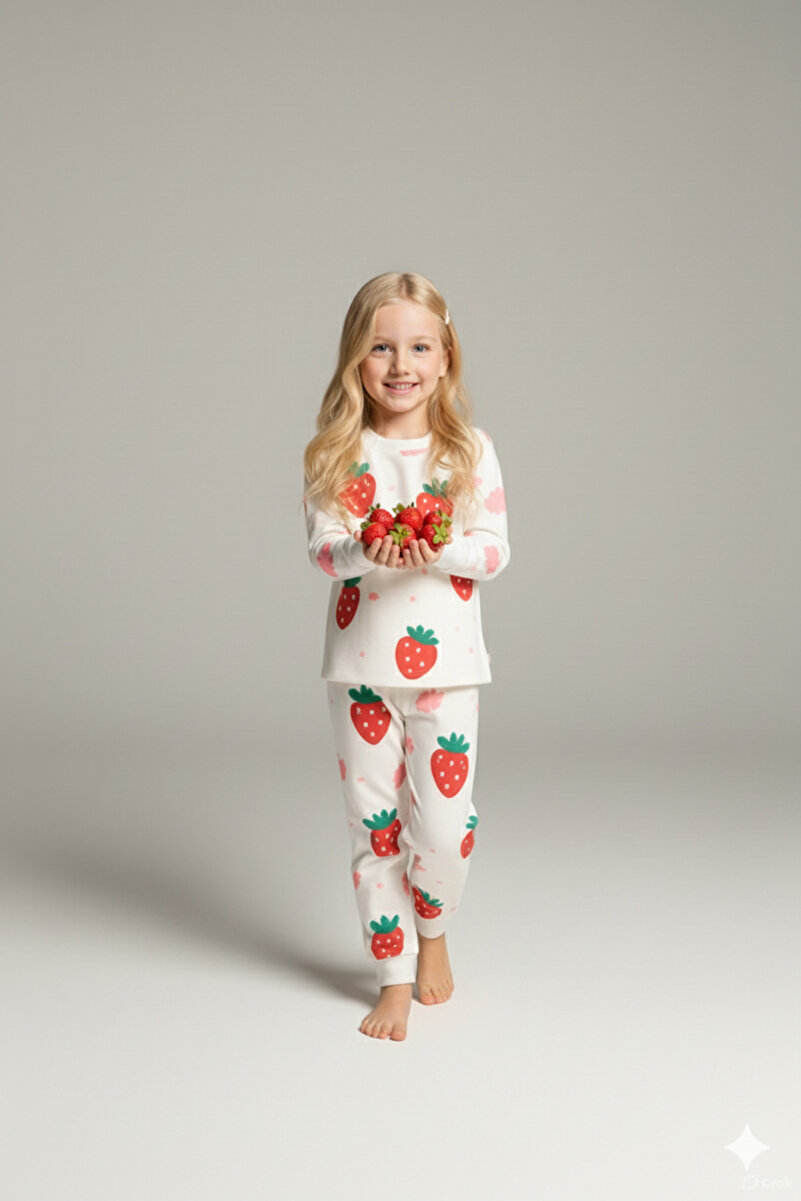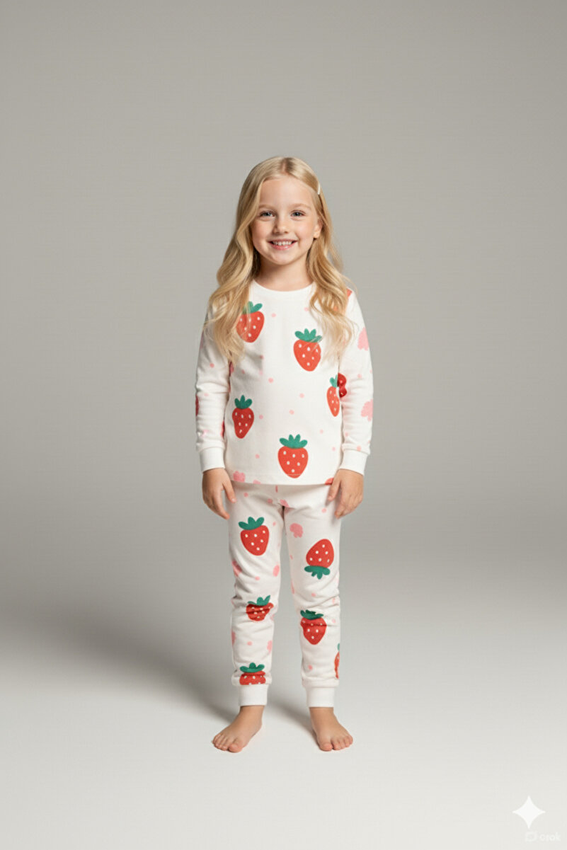 Let your little one drift off to dreamland in style with our MADALINA Girls’ Strawberry Print Pajama Set. Made from 100% soft, breathable cotton, this delightful two-piece set features an adorable strawberry design that adds a fun touch to bedtime. Perfect for cozy nights and playful mornings, it’s a must-have addition to your child’s sleepwear collection, ensuring comfort and joy in every sleepover and slumber party.