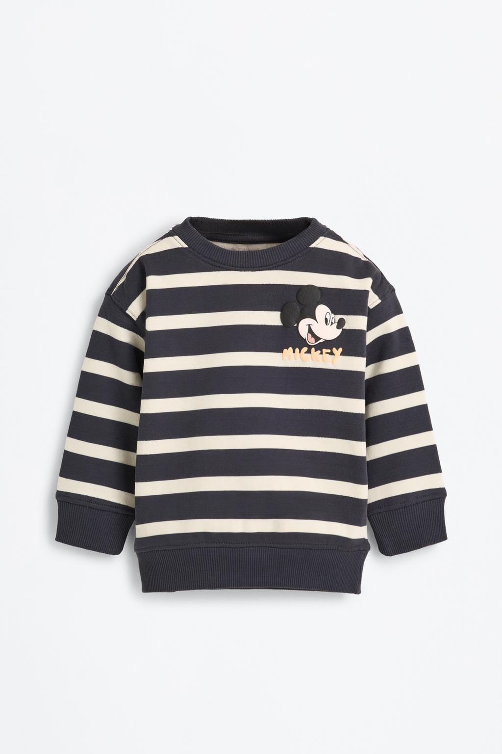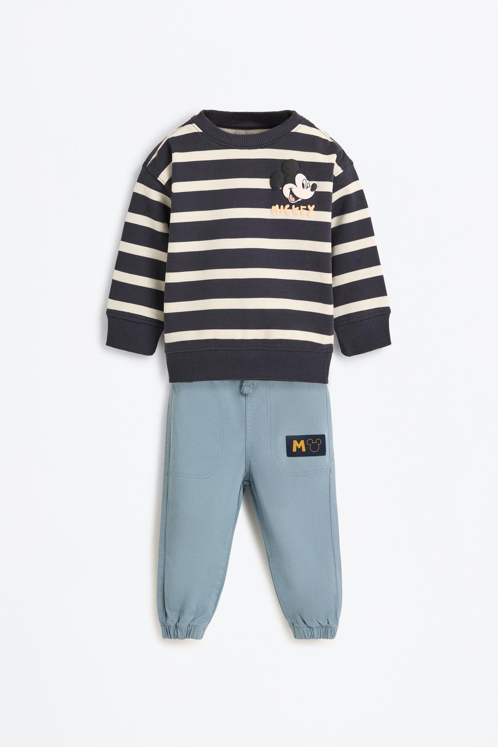This adorable two-piece cotton set features a stylish sweatshirt and matching pants, perfect for your little one’s adventures. The relaxed fit sweatshirt boasts a playful striped print with a cozy crew neck and elastic cuffs, while the embroidered pants are designed with an adjustable waistband and elastic hems for a comfortable fit. Both pieces are adorned with charming Mickey Mouse ©Disney motifs and crafted from soft, brushed 100% cotton fabric, ensuring all-day comfort and fun for your child.