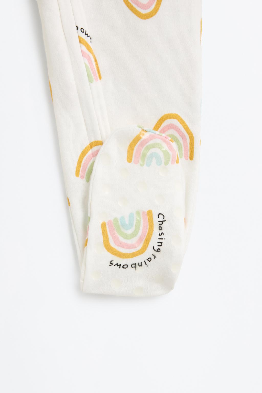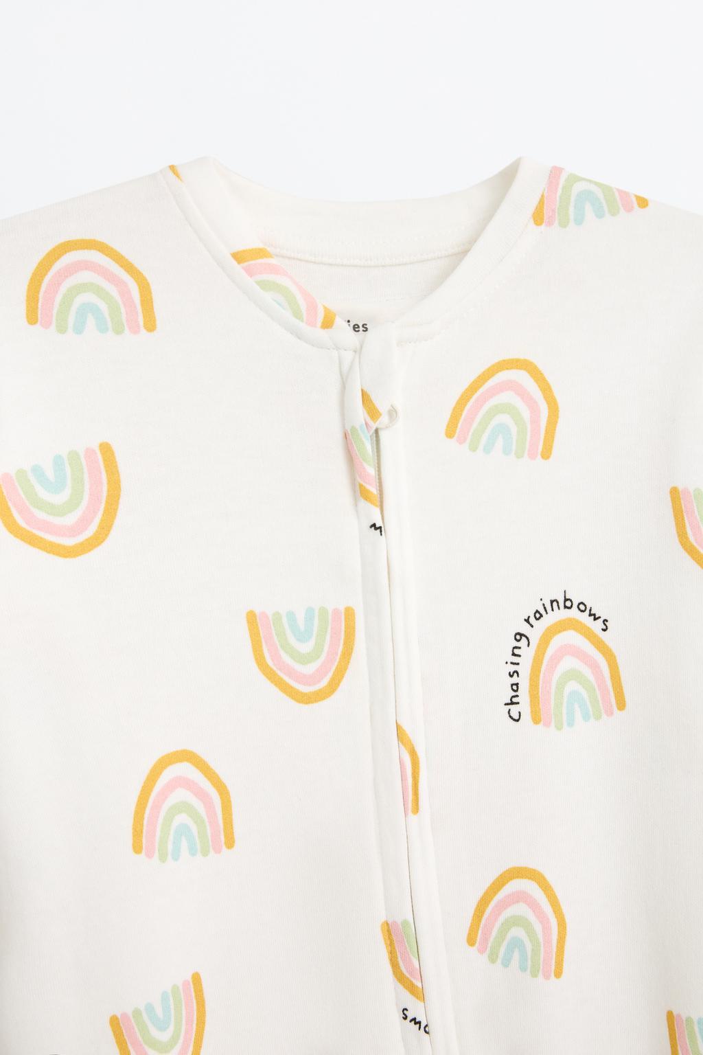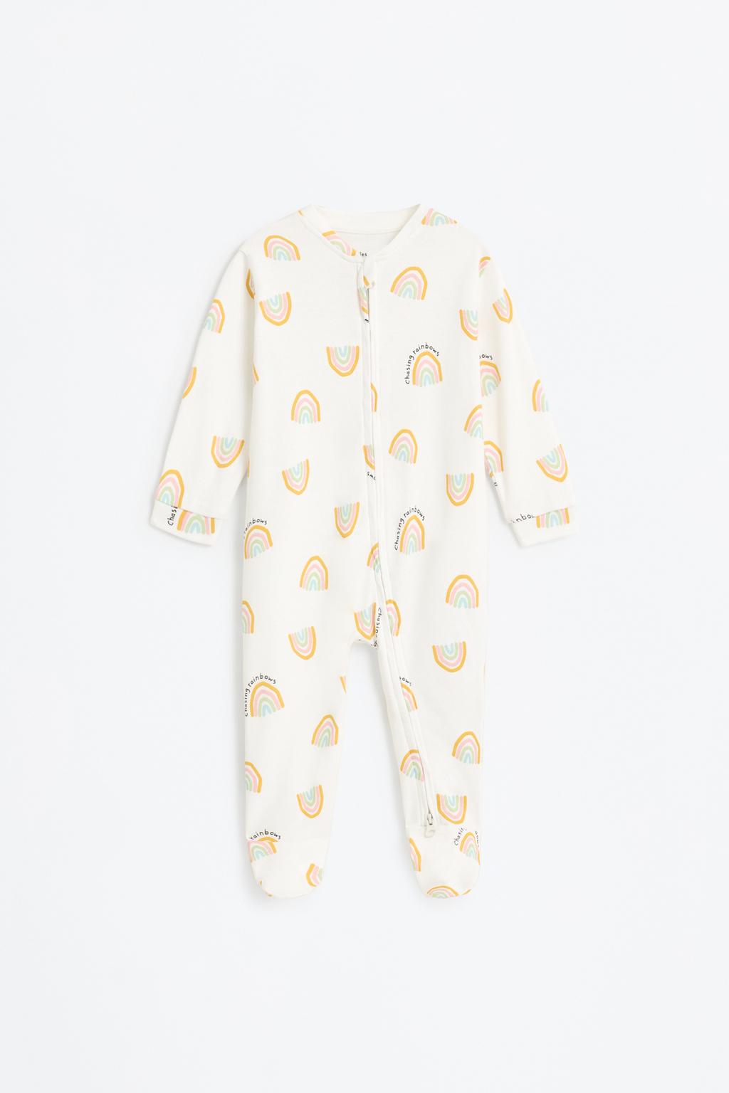 Cozy and stylish, this one-piece interlock pajama features a closed foot design, a classic crew neck, and long sleeves, complete with a convenient zipper that runs down to the feet. Adorned with playful prints throughout, this pajama is made from 100% soft cotton interlock fabric, ensuring your little one stays comfortable and snug during bedtime adventures. Perfect for keeping them warm and cheerful on chilly nights!
