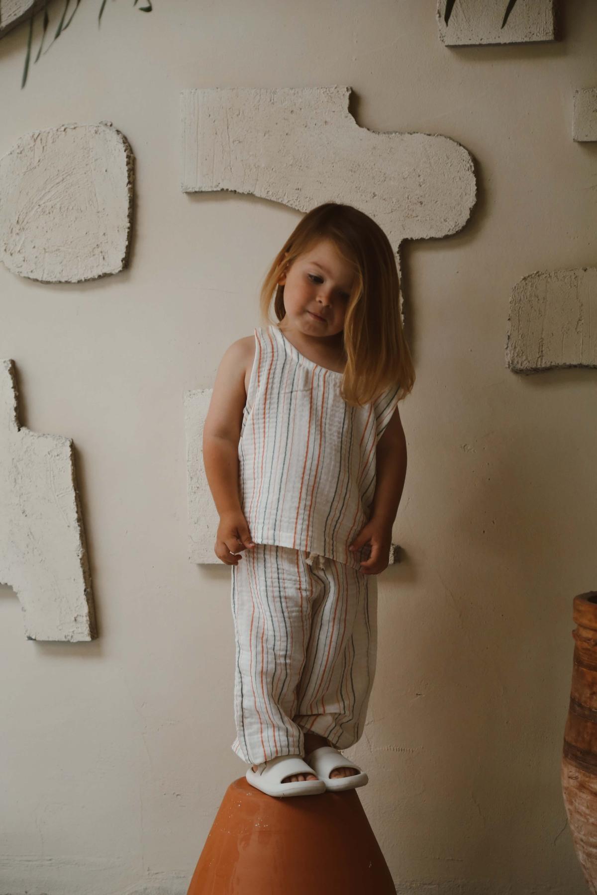 Be the first to review “Orange-Green Striped Tank Top and Pants Set”