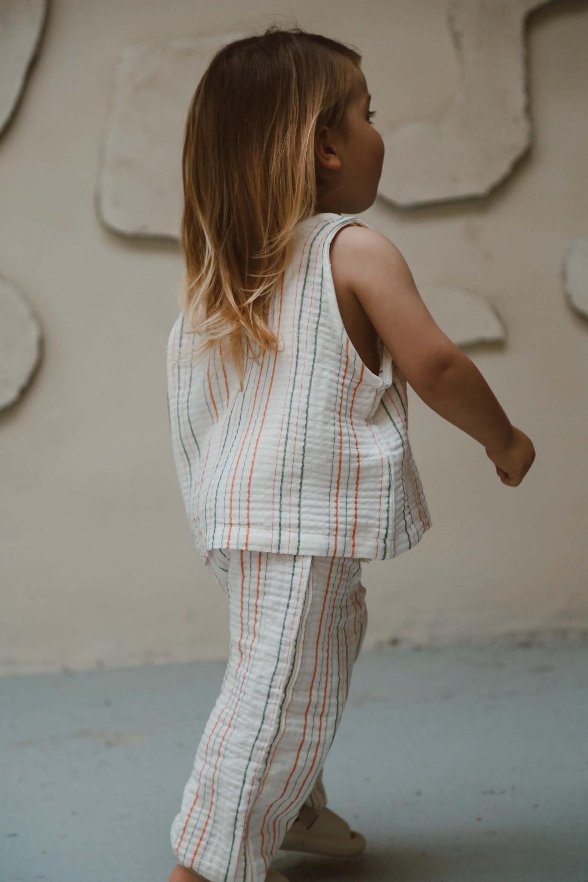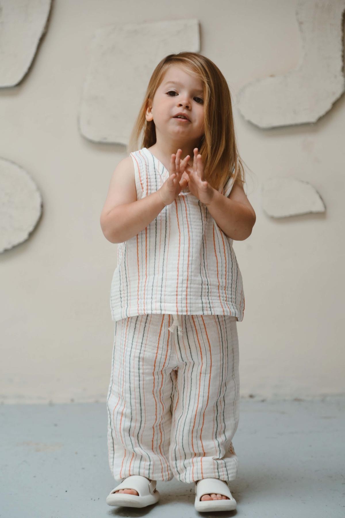 This vibrant Orange-Green Striped Tank Top and Pants Set is crafted from 100% cotton for ultimate comfort and breathability. Designed in a perfect fit, it is suitable for both boys and girls, making it a versatile addition to any child’s wardrobe. The set includes a stylish tank top and matching pants, adhering to OEKO-TEX® standards for safe play. Ideal for warm days or layered for cooler weather, this outfit is perfect for adventures, playdates, or just lounging at home.