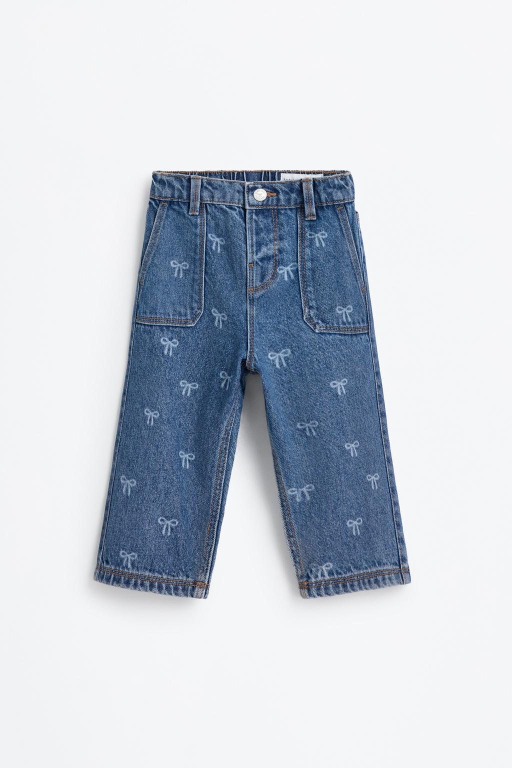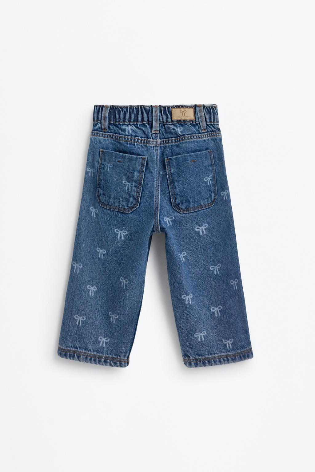 These stylish patterned wide-leg jeans are perfect for your little one’s wardrobe. Featuring a convenient metal zipper and button closure, along with an elastic waistband for a comfortable fit, these jeans are designed for a relaxed and trendy look. With two front pockets and two back pockets, they provide ample space for little treasures. Made from stretchy cotton fabric, these jeans combine comfort and fun, making them ideal for everyday adventures.