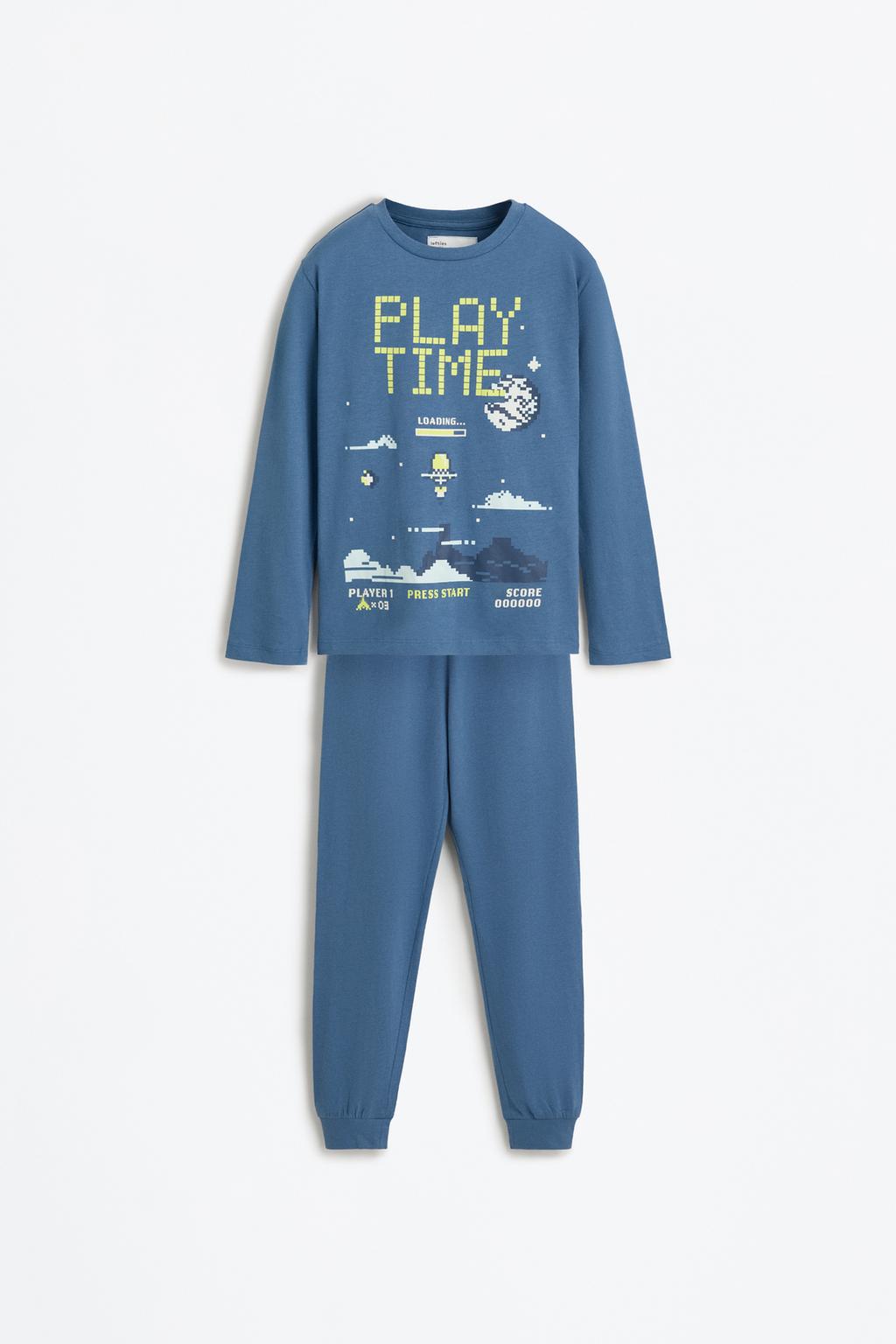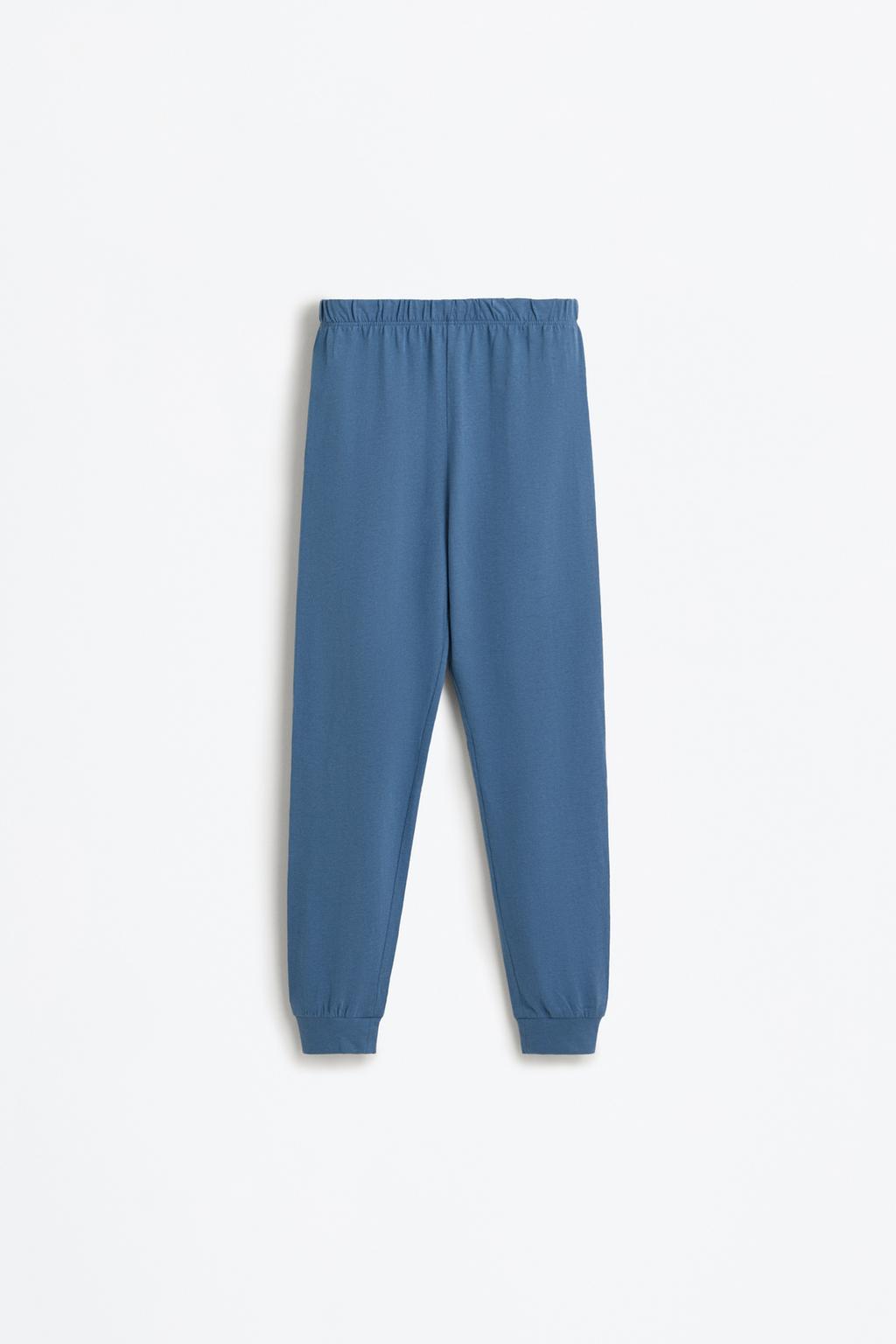 This charming two-piece pajama set is perfect for cozy nights and playful mornings. Featuring a stylish bike-neck, long-sleeve t-shirt adorned with delightful prints, paired with comfortable solid-colored pajama bottoms that have an elastic waistband and ribbed cuffs, this set ensures both comfort and style for your little one. Made from 100% cotton, it’s soft against the skin, making it an ideal choice for sweet dreams.