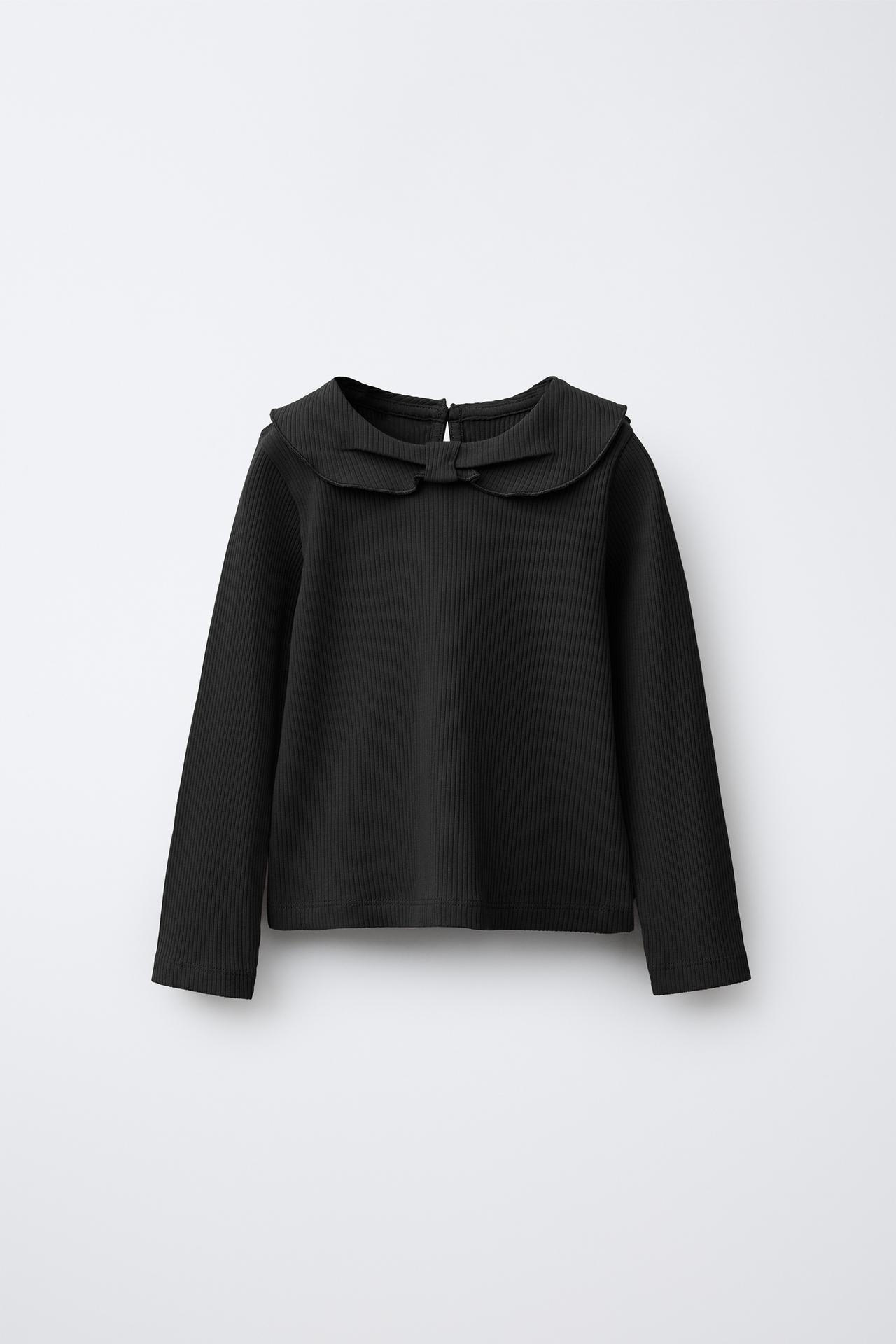 This charming ribbed T-shirt features a delightful Peter Pan collar and long sleeves, perfect for your little one’s wardrobe. With its classic design and a buttoned teardrop opening at the back, it offers both style and comfort, making it an ideal choice for everyday adventures or special occasions. Dress your child in this adorable top and let their personality shine through!