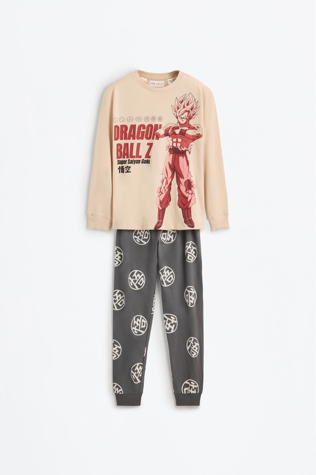 This delightful two-piece pajama set features a long-sleeve, crew-neck shirt decorated with a vibrant Super Saiyan Goku graphic from Dragon Ball, paired with comfortable, elastic-waist long pants adorned with fun prints. Made from 100% cotton, it promises to keep your little hero cozy and stylish during bedtime adventures.