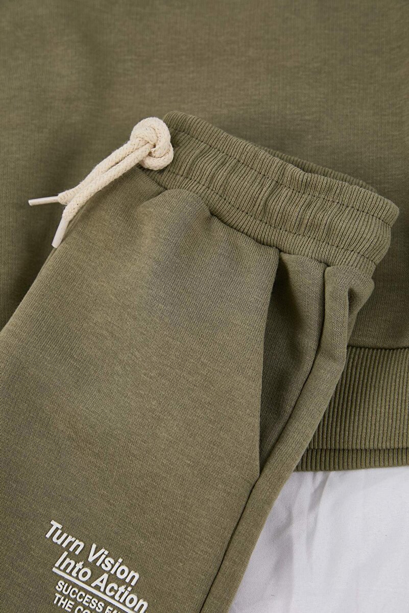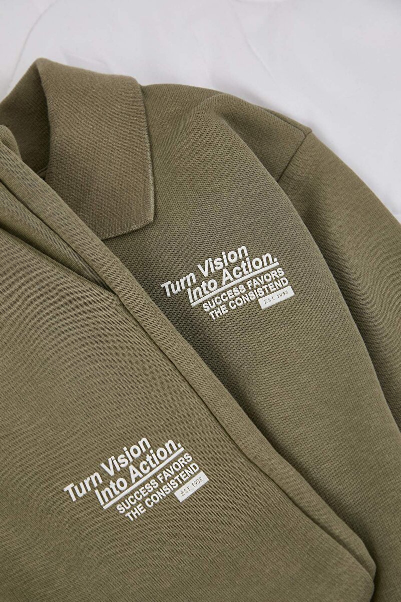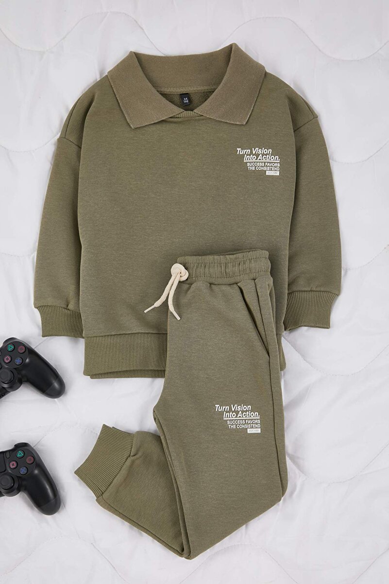 Trendyolmilla Kids Light Khaki 100% Cotton Printed Polo Collar Oversized Boys Knit Set