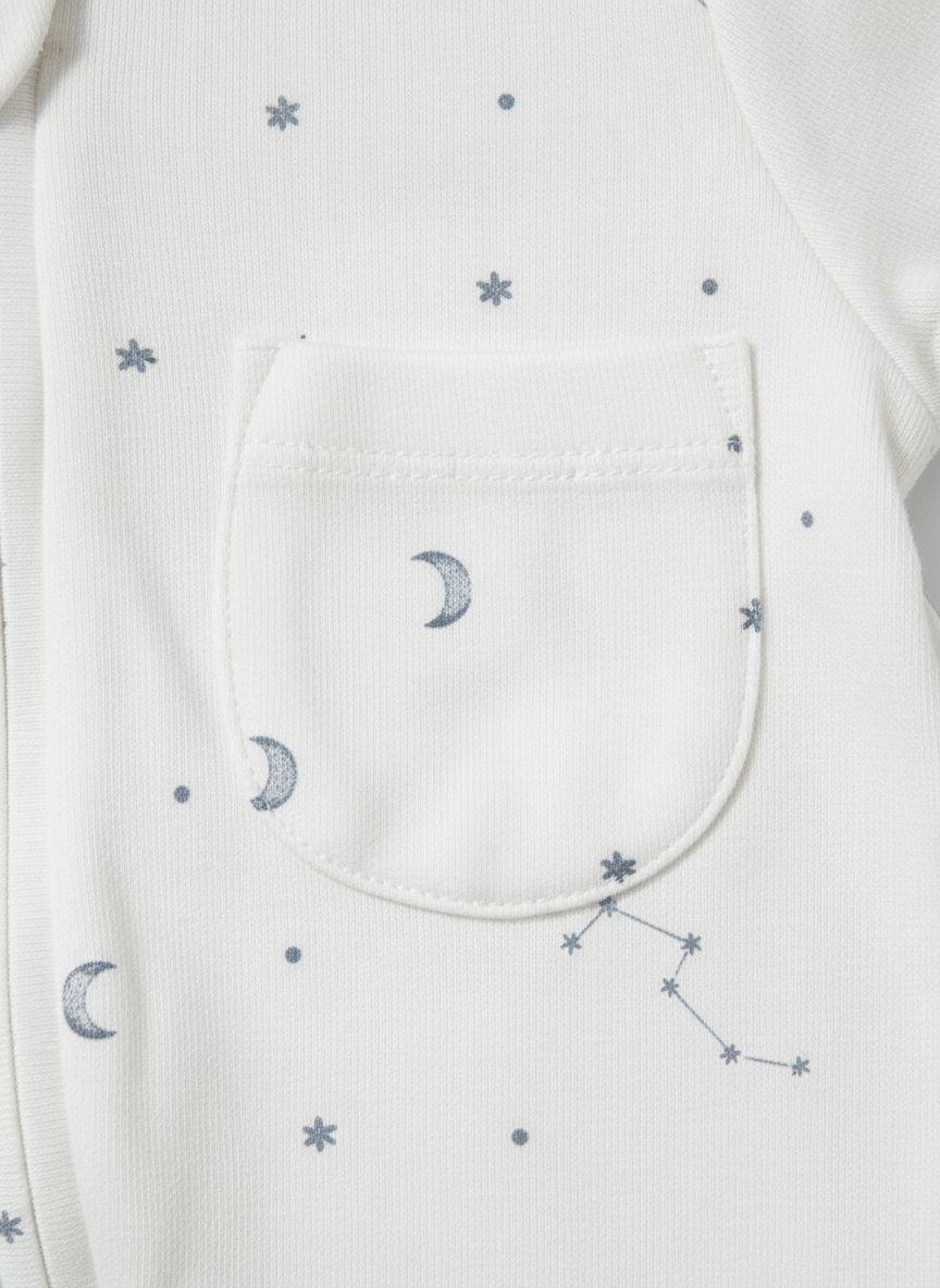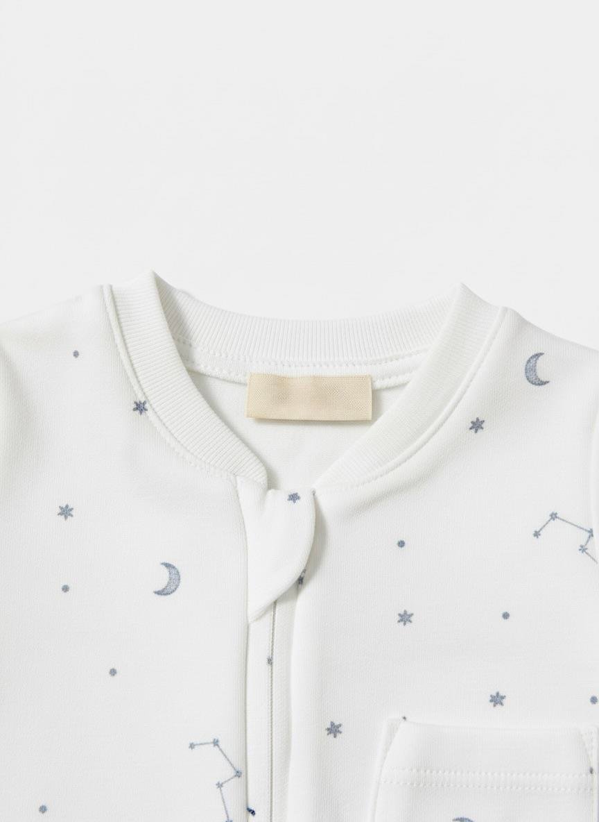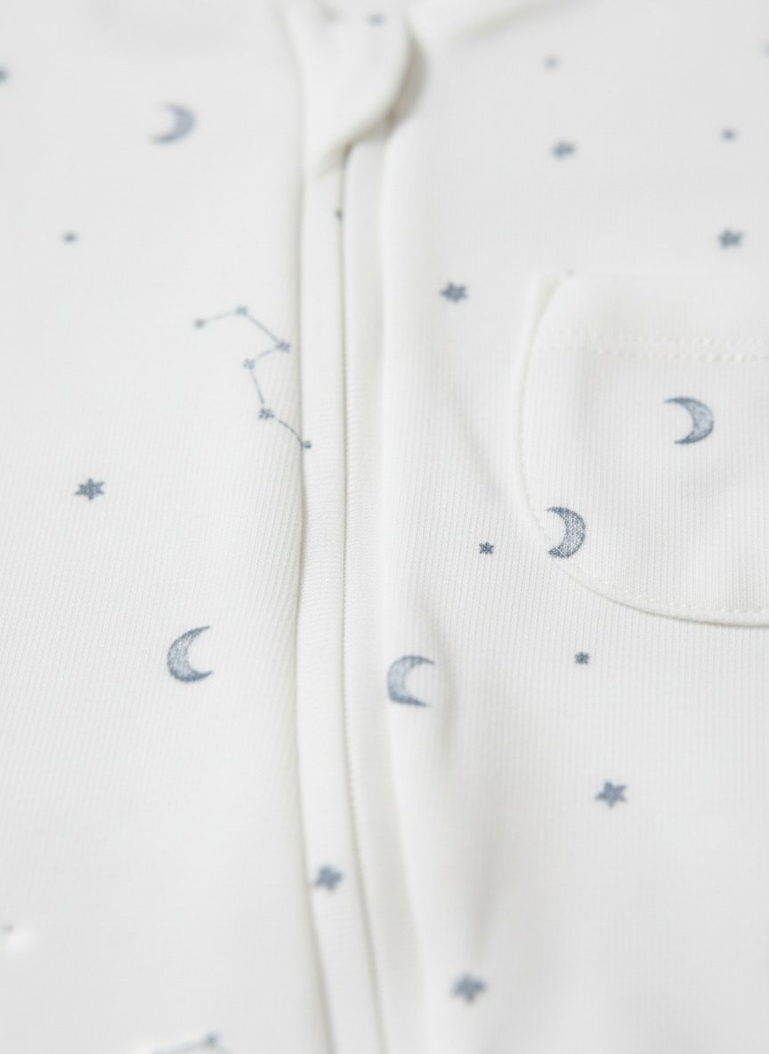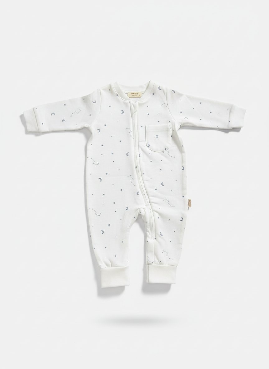 Unisex Cotton Ecru Sky Pattern Long Sleeve Zip-Up Romper – Moon and Star Print