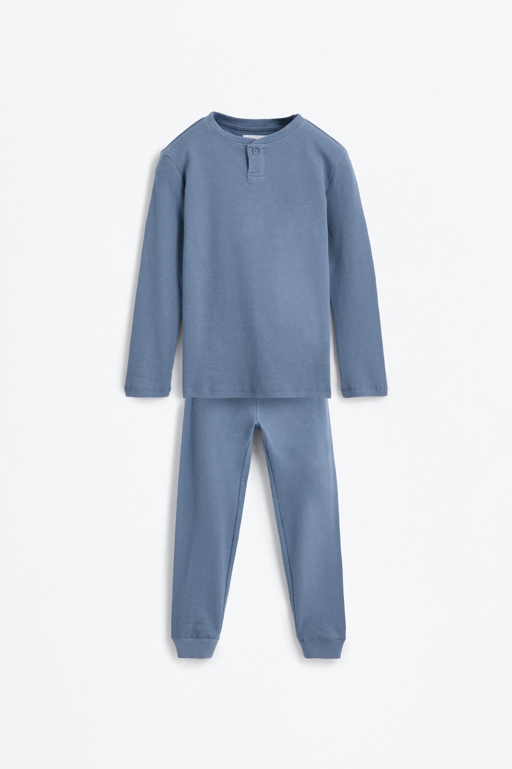 This delightful two-piece long pajama set is perfect for cozy nights in. Featuring a long-sleeved, round-neck button-up T-shirt paired with comfortable, elastic-waist long pants, it offers both style and ease for your little ones. Made from 100% cotton waffle fabric, this set ensures softness and breathability, making bedtime a joyful experience.